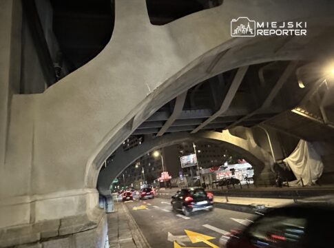 Ciężarówka uszkodziła świeżo odnowiony fragment wiaduktu Mostu Poniatowskiego