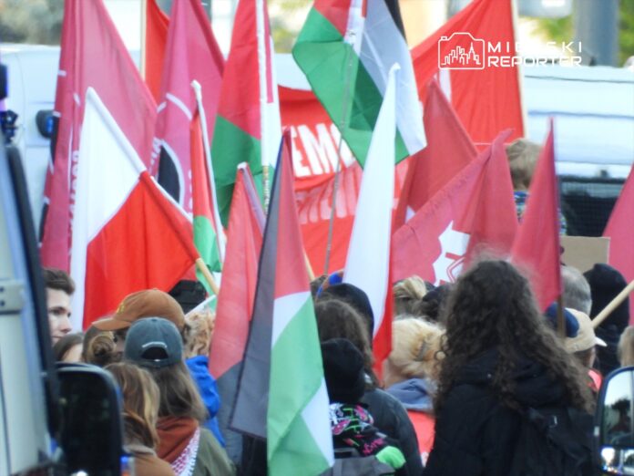 Marsz propalestyński przeszedł Trasą Łazienkowską i Wawelską w stronę ambasady Izraela