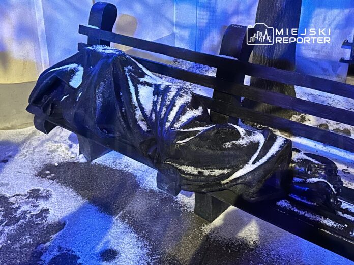 “Leży nieprzytomny i nie oddycha”… Okazało się, że to rzeźba “Bezdomnego Jezusa” na Miodowej