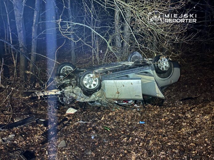 Przy trasie S8 auto wypadło z drogi i dachowało. Kierująca nie zauważyła zakrętu?