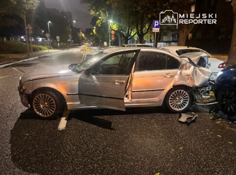 Kierujący BMW wjechał w 5 zaparkowanych aut na Mokotowie