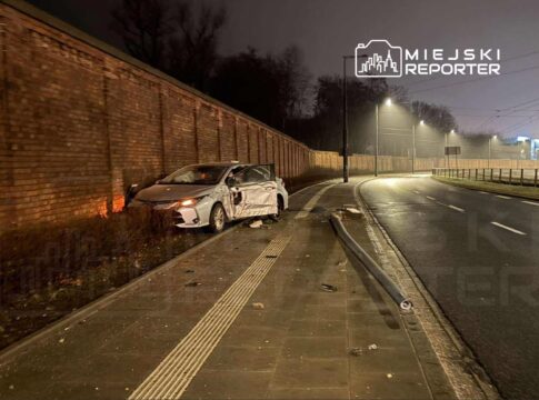 Poszukiwana i z sądowym zakazem prowadzenia pojazdów wjechała w latarnię i mur cmentarza na Woli
