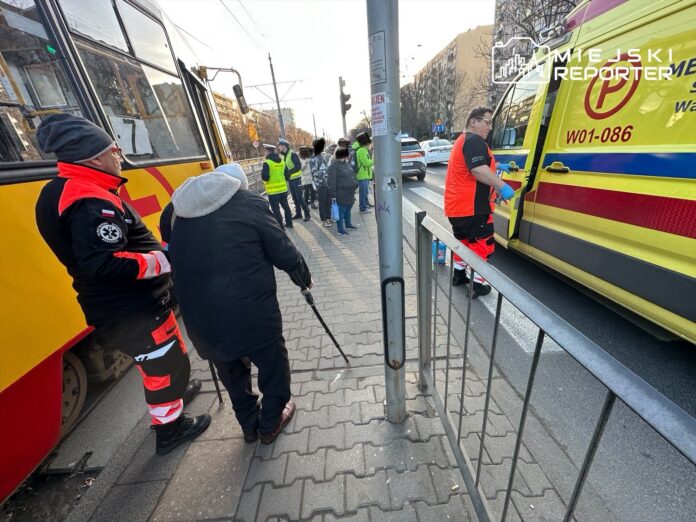 Pieszy wszedł pod tramwaj na Grójeckiej. Po potrąceniu wpadł na starszego mężczyznę i uciekł. 95-latek w szpitalu