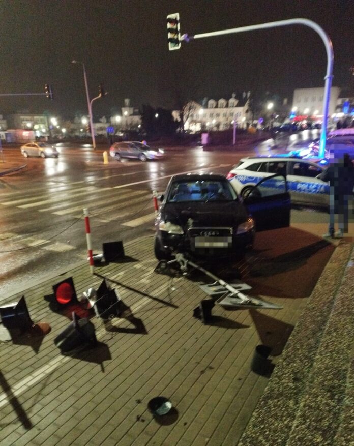 Jazda z prędkością 122 km/h i zlekceważenie czerwonego światła zakończone spotkaniem z sygnalizatorem i utratą prawa jazdy