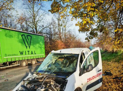 Zderzenie czołowe dwóch pojazdów. Jeden z kierujących w stanie ciężkim