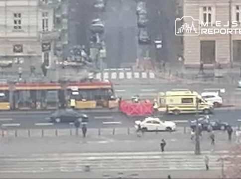 Potrącenie przez tramwaj przed Pałacem Kultury i Nauki. Pieszy jest reanimowany