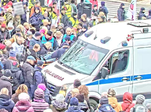 Policjanci pomogli mężczyźnie, który zasłabł podczas zgromadzenia. Uczestnicy utrudniali akcję ratunkową, bo chcieli zobaczyć co się stało