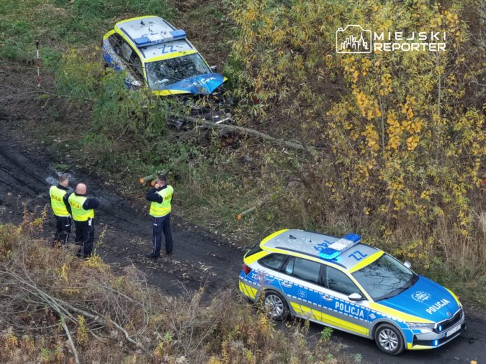W trakcie pościgu radiowóz uderzył w drzewo. Policja zatrzymała domniemanego kierowcę, który uciekł