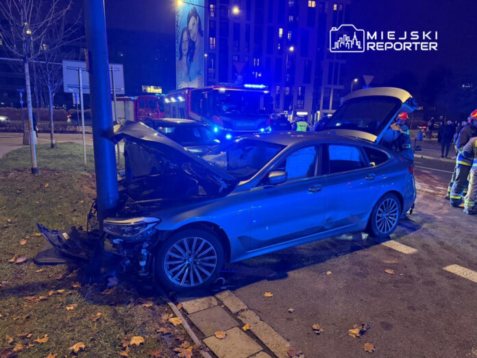 Pościg przez Warszawę. Rozpędzonym BMW staranował policyjną blokadę i wbił się w słup