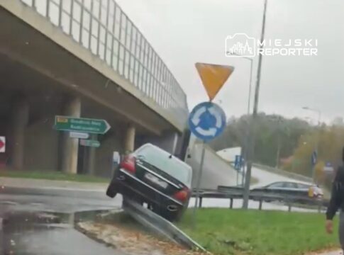 Zjeżdżał Mercedesem z trasy S8, zawisł na barierkach