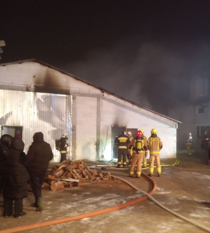 Pożar kurnika na fermie drobiu pod Warszawą. Z ogniem walczyło 10 zastępów straży pożarnej