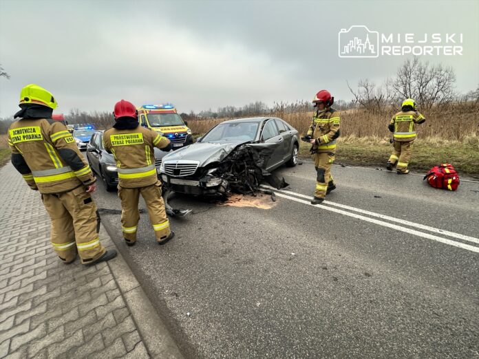 Czołowe zderzenie osobówki z ciężarówką na ulicy Dzikich Łabędzi w miejscowości Moszna-Wieś (pow. pruszkowski). Droga zablokowana. Ze wstępnych ustaleń wynika, że kierujący samochodem osobowym marki mercedes prawdopodobnie zasłabł za kierownicą i uderzył czołowo w pojazd ciężarowy, jadący z naprzeciwka. Rykoszetem...