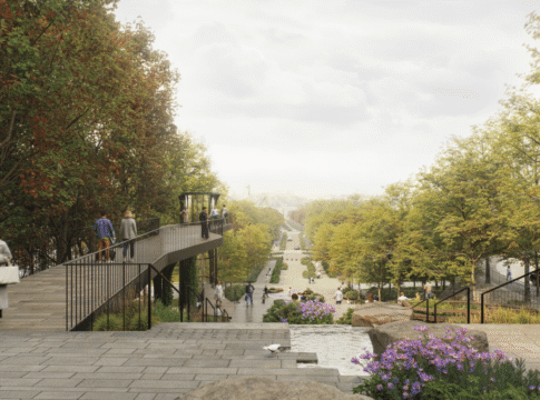 Kładka pieszo-rowerowa połączona z Krakowskim Przedmieściem. Powstanie taras widokowy z widokiem na kładkę [WIZUALIZACJE]