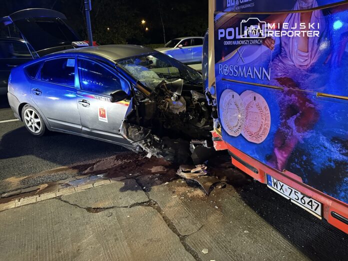 Zderzenie dwóch aut na Mokotowie. Pasażerka w szpitalu, tramwaje zablokowane