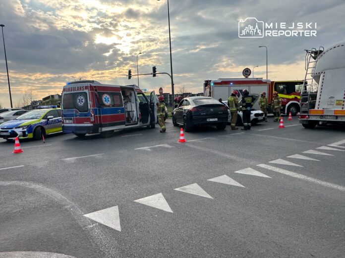 Wypadek w Wilanowie. Kierowca przewozu osób nieoczekiwanie skręcił zderzając się z elektryczną KIA