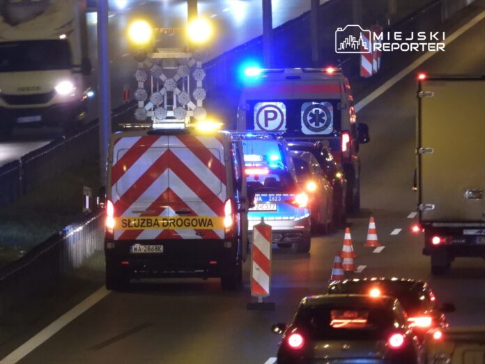 Zderzenie Nissana z barierami na S2. Jedna osoba opatrywana, kierowca zbiegł