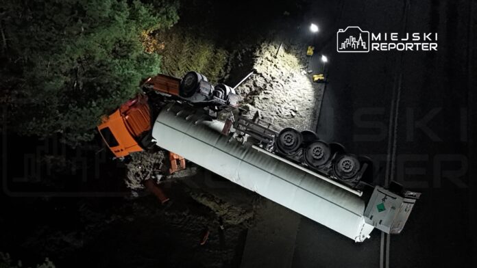 Około godziny 20:10 na drodze krajowej nr 62 w miejscowości Skuszew (powiat wyszkowski) doszło do poważnego zdarzenia z udziałem cysterny transportującej ciekły azot. Ciężarówka zjechała na łuku drogi do rowu i dachowała. Jedna osoba została ranna, droga jest zablokowana...