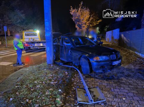 Kierujący BMW nie dostosował prędkości i uderzył w słup. 4 osoby trafiły do szpitala