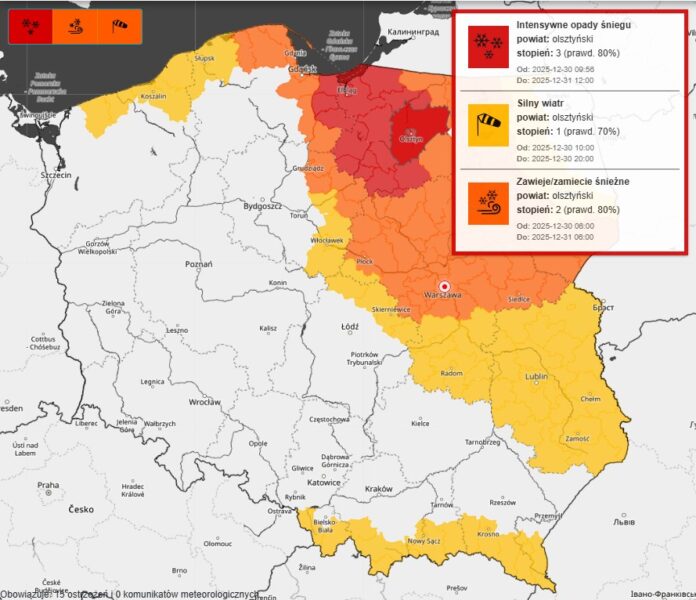 Według prognoz meteorologicznych publikowanych 31 grudnia 2025 roku strefa intensywnych opadów śniegu przesuwa się z północy kraju w kierunku Mazowsza i w najbliższych godzinach ma objąć także Warszawę. Po krótkiej porannej poprawie warunki w stolicy ponownie mają się pogorszyć,...