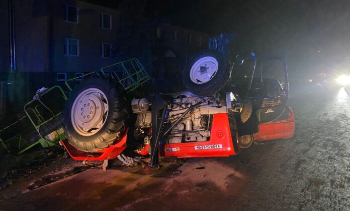 Traktor ursus dachował po zderzeniu z osobówką. Trzy osoby zatrzymane