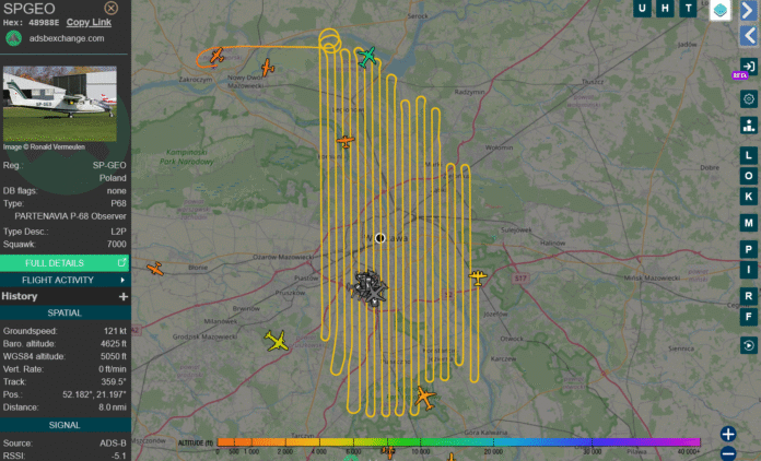 Tajemniczy samolot krąży od rana nad Warszawą. To maszyna zwykle robiąca zdjęcia z powietrza
