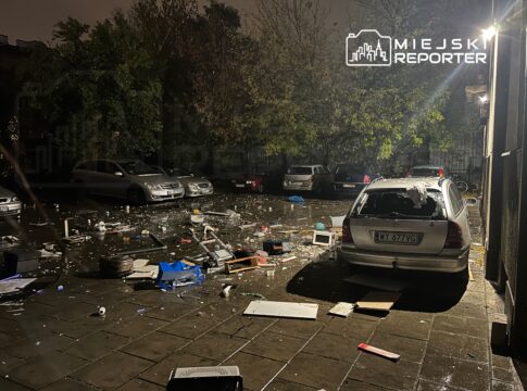 Trwa akcja służb na Mokotowie. Mężczyzna wyrzuca przedmioty z okna. Mikrofalówka uderzyła w auto. Na miejscu kontrterroryści