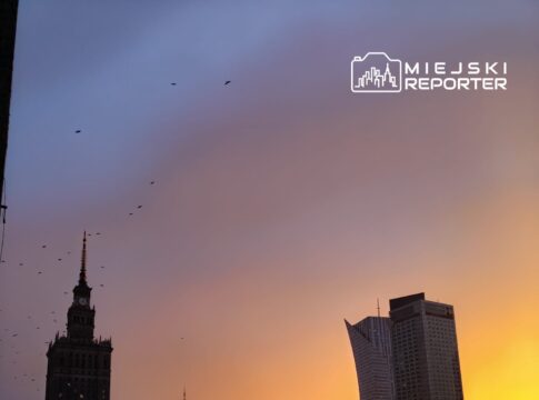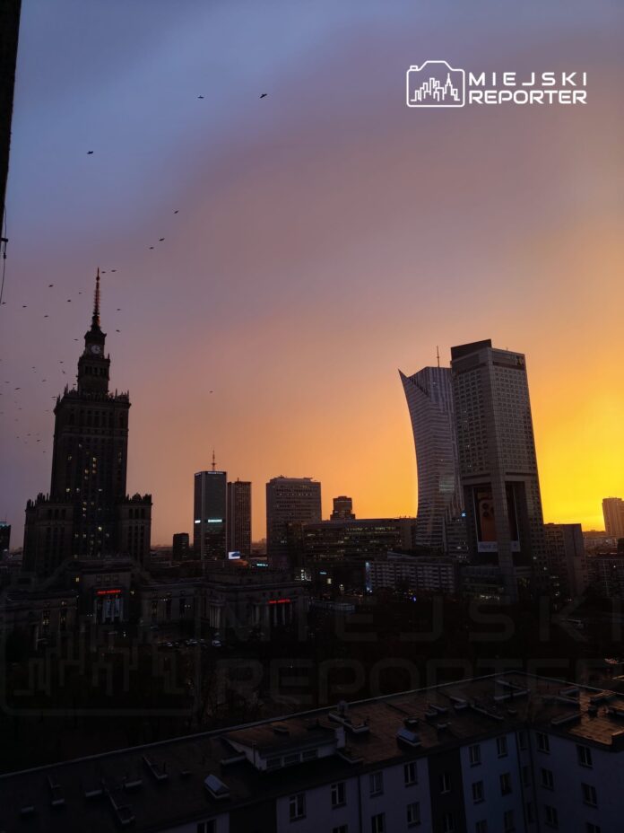 Granatowe chmury, tęcza i złoto czerwieni nad Warszawą. Niespotykany zachód słońca