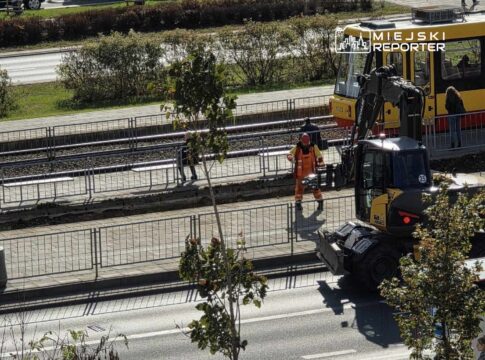 Węziej przy dworcu Warszawa Wschodnia. Remont torowiska tramwajowego