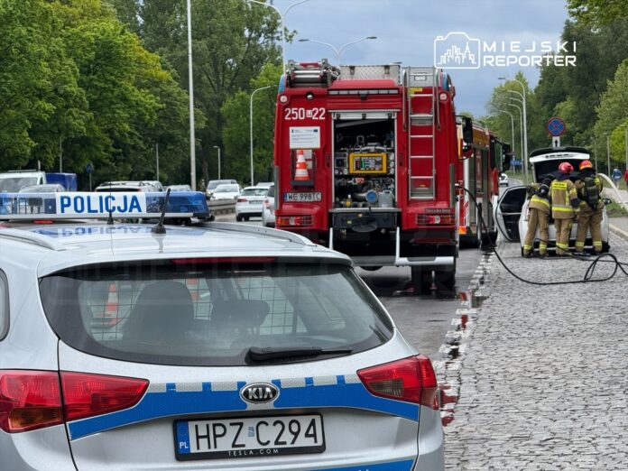 Samozapłon baterii trakcyjnej w aucie hybrydowym sparaliżował ruch na Wisłostradzie