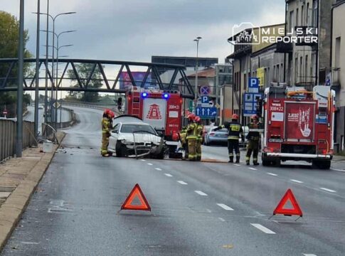 Kierujący BMW wjechał w barierki w Wawrze. Droga była zablokowana