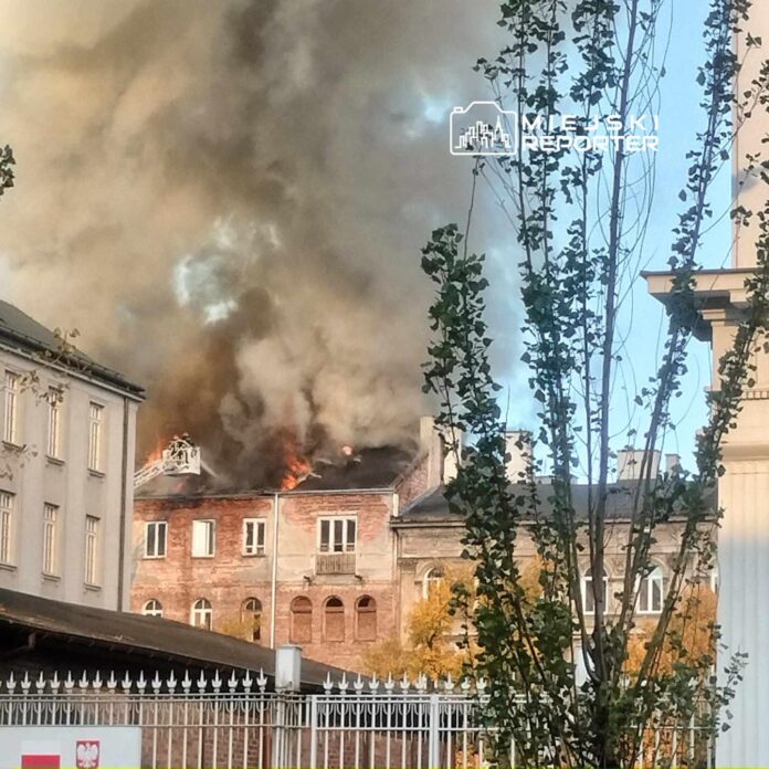 Pożar kamienicy na Pradze-Północ. Całe poddasze w ogniu