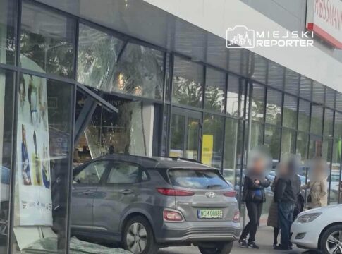 Około godziny 11:30 przy ulicy Królewskiej w Grodzisku Mazowieckim kierująca elektrycznym hyundaiem uderzyła w witrynę sklepu obuwniczego. Przód pojazdu...