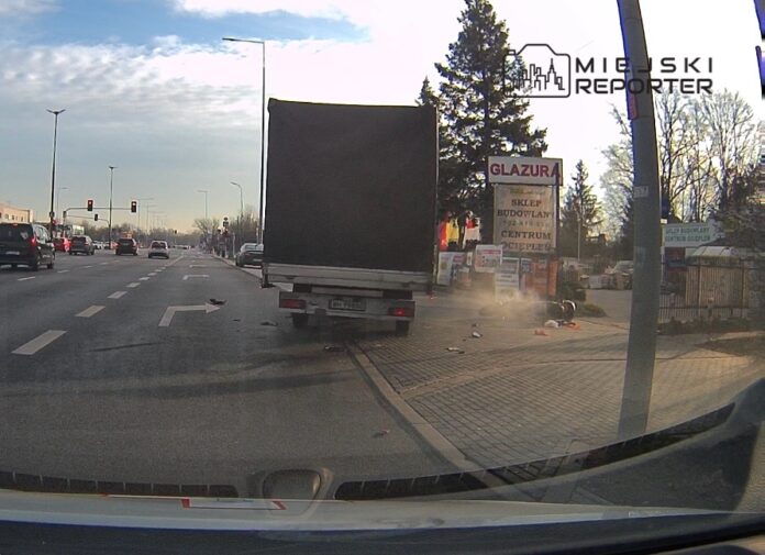 Poważny wypadek motocyklisty na Białołęce. Kierujący dostawczakiem nagle skręcił z środkowego pasa
