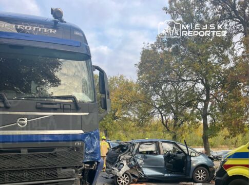 Zderzenie trzech samochodów i ciężarówki na DK92. Droga zablokowana