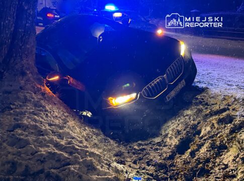 Kierujący BMW nie dostosował prędkości do warunków panujących na drodze i wjechał do rowu