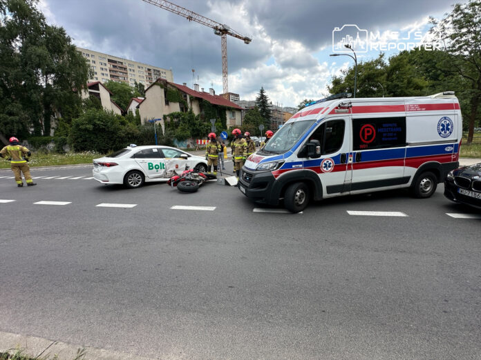 Przewozem osób zajechał drogę motocykliście. Wypadek na Bielanach