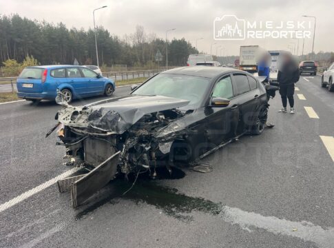 Kierujący BMW nie dostosował prędkości do warunków na drodze i uderzył w barierki, latarnię i ekrany dźwiękochłonne na trasie S8