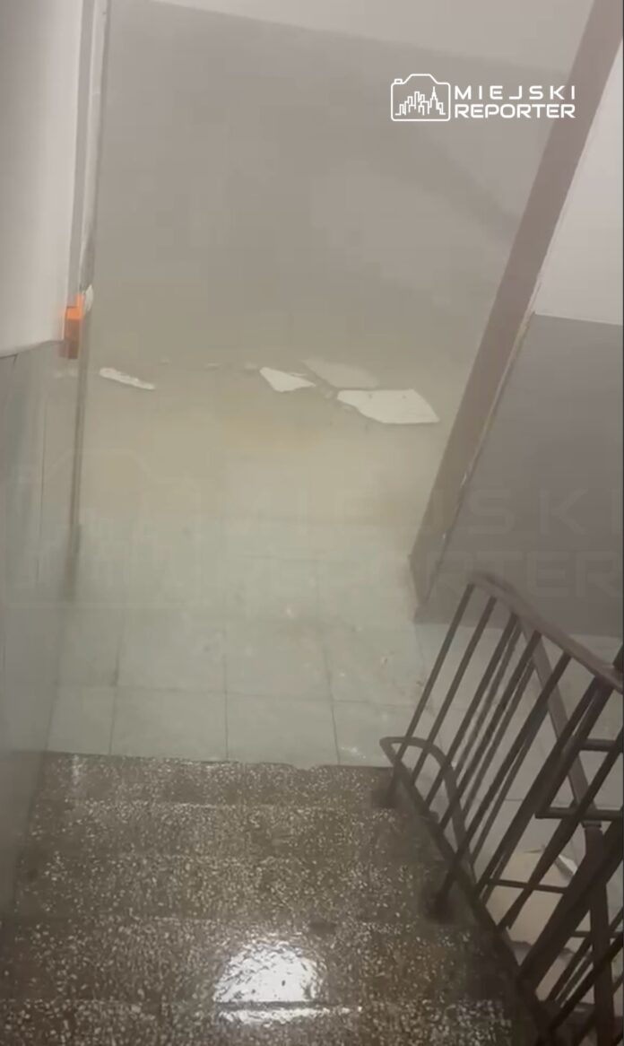 Na klatce schodowej pękł zawór. Woda lała się strumieniami po schodach