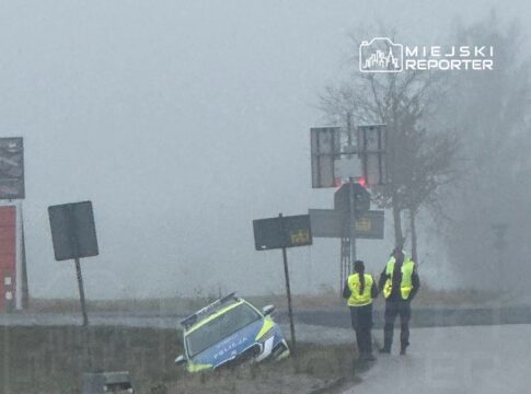 Radiowóz w rowie. “28-letni funkcjonariusz nie dostosował prędkości do warunków panujących na drodze”