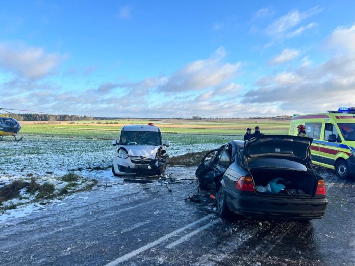 Czołowe zderzenie dwóch aut na oblodzonej drodze. Nie żyje kierująca BMW