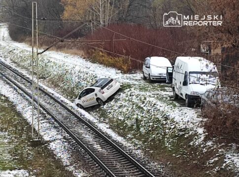 Toyota zsunęła się z nasypu wprost na tory WKD