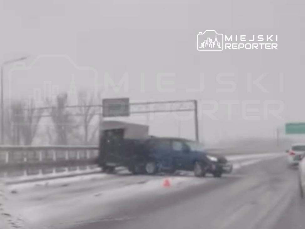 Trudne warunki na drogach. Zderzenie dwóch aut trasie S2