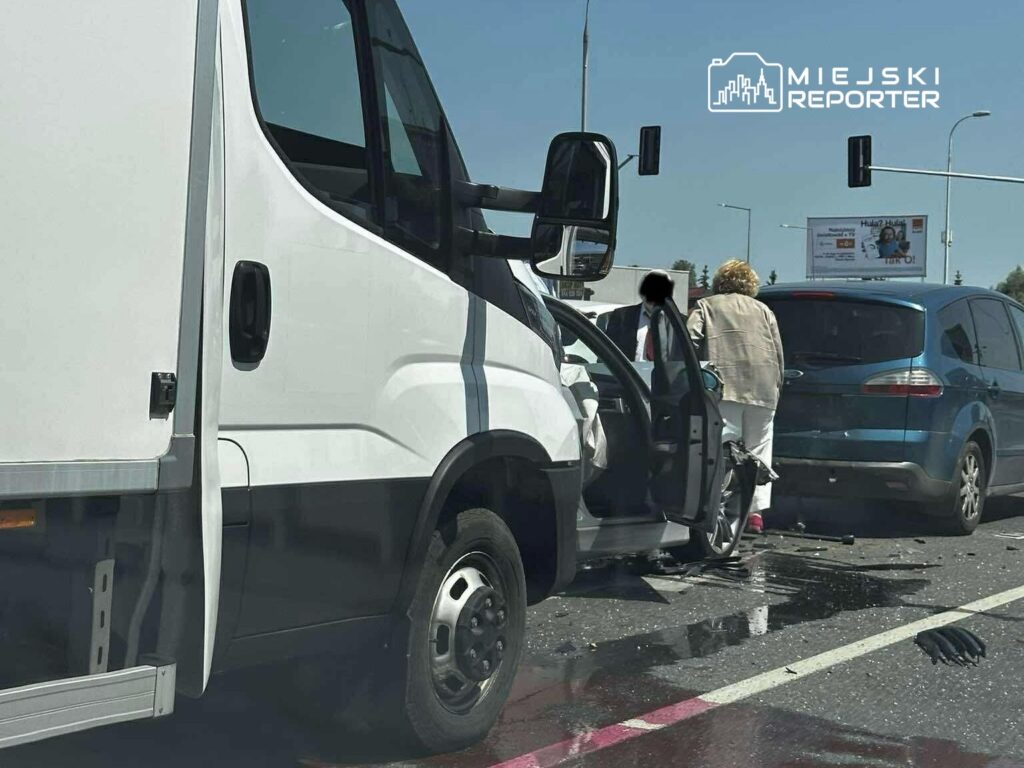 Dziś 14 czerwca około godziny 12:00 na drodze wojewódzkiej 719 (Aleje Jerozolimskie) przy skrzyżowaniu z ulicą Spisaka w kierunku centrum doszło do kolizji trzech pojazdów. Dostawcze Iveco najechało na tył BMW, które – podobnie jak jadący przed nim Ford – zatrzymywało się na czerwonym świetle.