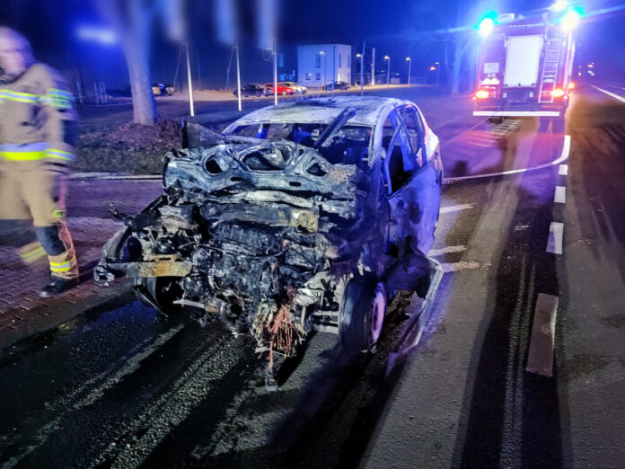 Seatem wjechał w tył naczepy ciężarówki. Osobówka stanęła w ogniu