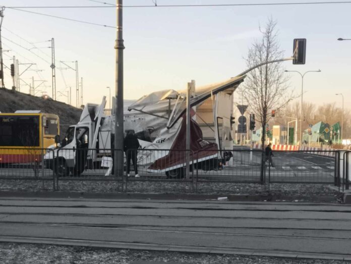 Kierowca auta dostawczego zahaczył o wiadukt na Targowej. Całkowicie zniszczył skrzynię ładunkową