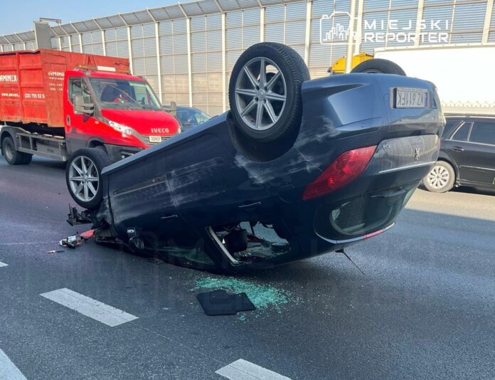 Do zdarzenia ciężarówki z samochodem osobowym doszło na trasie S2 na wysokości ulicy Warszawskiej w Ursusie. Po zderzeniu pojazd osobowy marki peugeot uderzył w barierki i dachował. Auto leży na dachu na środku drogi. Aktualnie nie ma informacji o osobach...