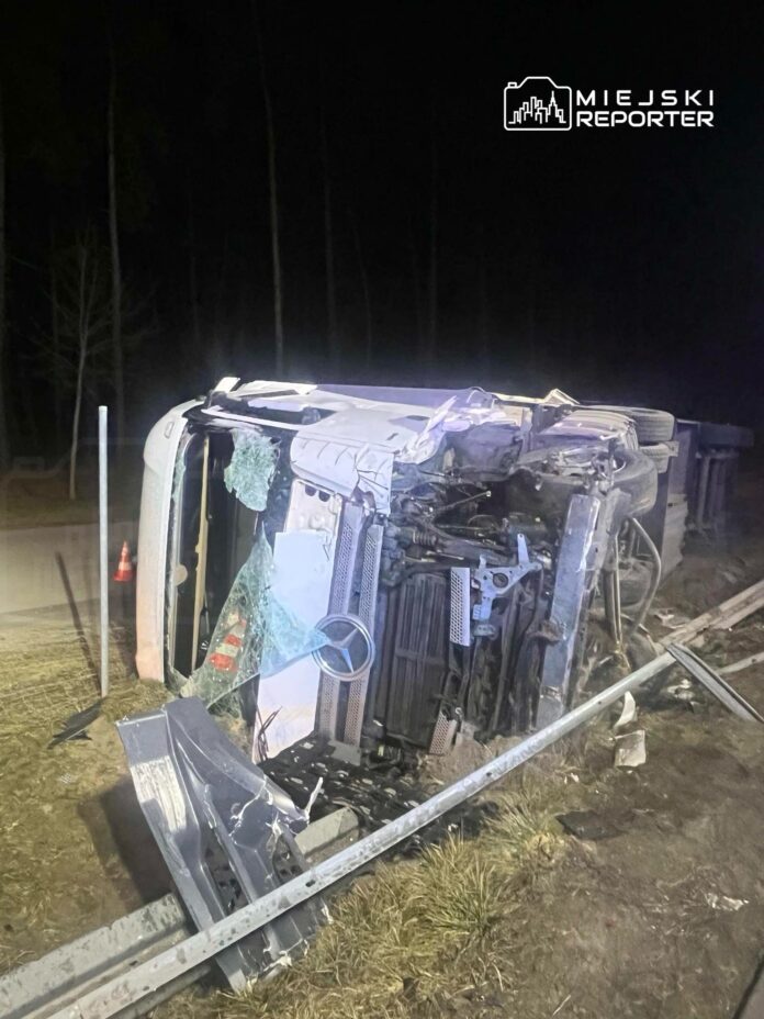 Zderzenie busa i dwóch ciężarówek na S8. Dwa pojazdy leżą na boku. Droga zablokowana