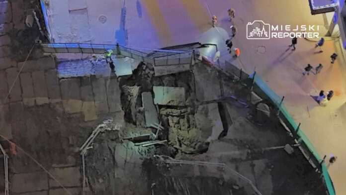 Potężne zapadlisko na budowie metra na Bemowie. Część mieszkańców bez wody oraz prądu