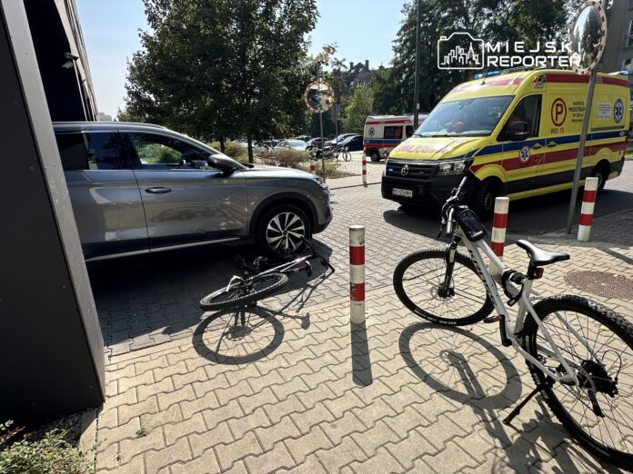 Rowerzystka ranna po zderzeniu z samochodem. Jechała po chodniku, auto wyjeżdżało z garażu