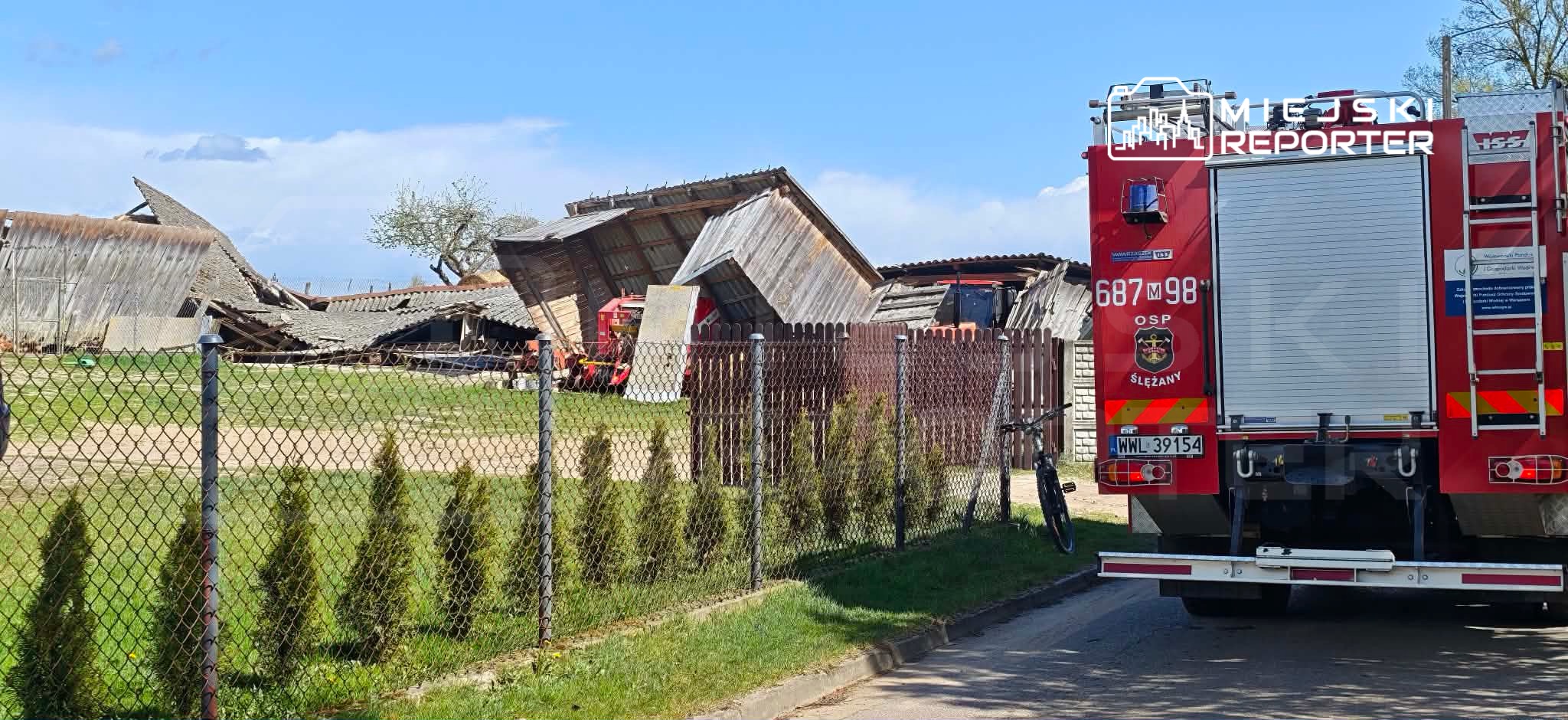 W miejscowości Ślężany w powiecie wołomińskim doszło do groźnego zdarzenia związanego z silnym wiatrem. Pod naporem porywów uszkodzona została drewniana stodoła o wymiarach około 30 na 10 metrów. Konstrukcja przewróciła się i zawaliła na znajdujący się w środku sprzęt, w tym traktory. Na szczęście nikt nie został ranny.